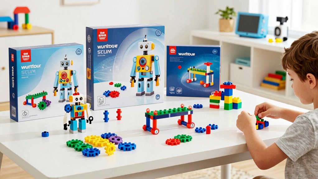 Looking for the best STEM building kits for kids in 2026? I’ve found options that spark creativity, teach engineering, and make learning fun. From versatile construction sets to robotic kits, these products focus on safety, durability, and engaging features like coding apps and light projects. They suit different ages and skill levels, ensuring there’s a perfect fit for any child. Keep exploring, and you’ll discover the top kits that truly inspire young minds.
